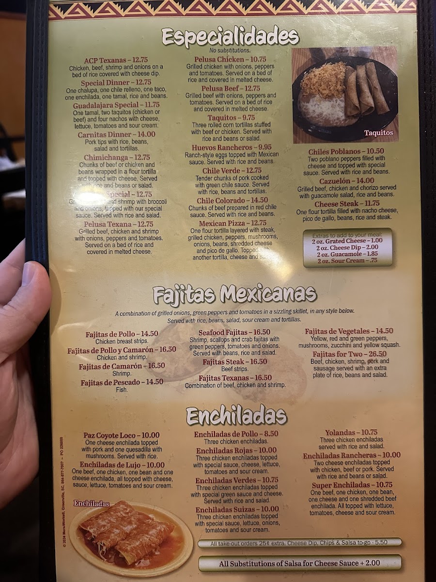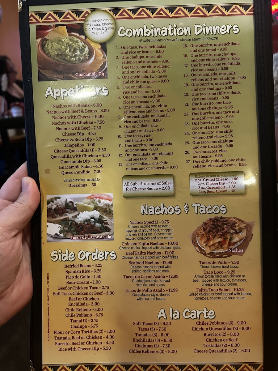 Guests can explore classic items like Carne Asada, Cheese Steak with Rice and Beans, or the vibrant Guacamole Mexicano. The menu also features hearty options such as Fajitas for Two, Burrito Grande, and Chicken Soup, which complement the warm, inviting atmosphere. For those seeking lighter or shareable bites, nachos paired with fresh salsa and guacamole offer a satisfying choice.