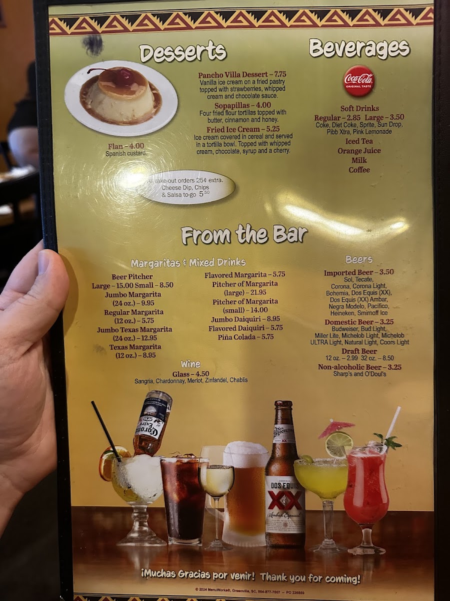 To accompany the food, refreshing margaritas and a selection of local beers provide a pleasant balance, especially during social gatherings or casual evenings. Sweet finishes like Fried Ice Cream add a gentle touch to end meals on a comforting note.