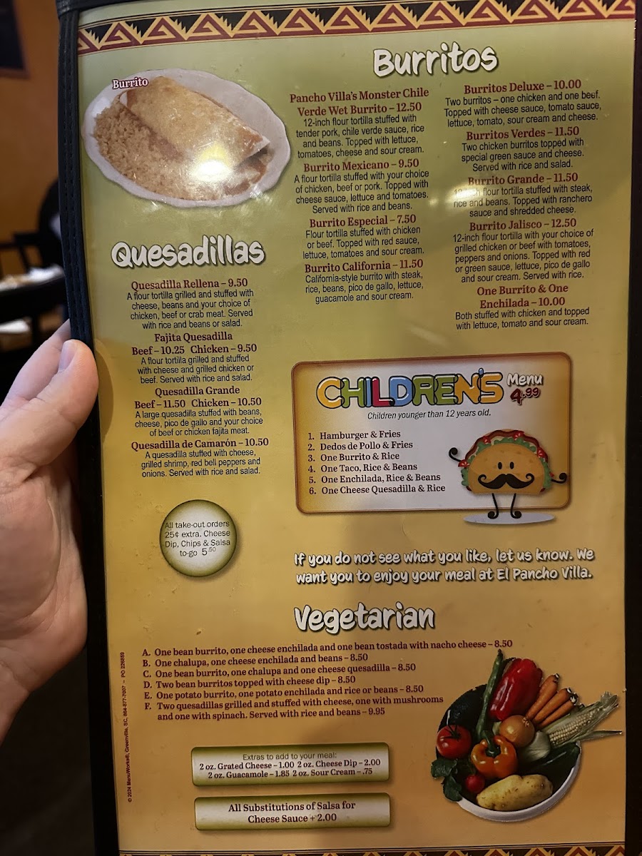 Pancho Villa Inc offers a menu that blends traditional Mexican flavors with approachable, comforting dishes. The menu has a casual, welcoming feel — ideal for enjoying familiar favorites in a relaxed setting. Whether stopping by for a laid-back lunch or gathering with friends for a lively dinner, the variety here suits both everyday meals and special occasions.
